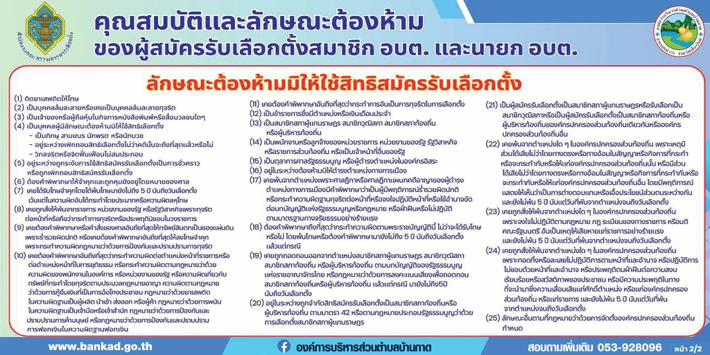 ประกาศรับสมัครรับเลือกตั้ง สมาชิกสภาองค์การบริหารส่วนต่าบลบ้านกาด และ นายกองค์การบริหารส่วนต่าบลบ้านกาดประกาศรับสมัครรับเลือกตั้ง สมาชิกสภาองค์การบริหารส่วนต่าบลบ้านกาด และ นายกองค์การบริหารส่วนต่าบลบ้านกาด ในระหว่าง วันที่ 1-5 ธันวาคม 2568 เวลา 08.00-16.30น.